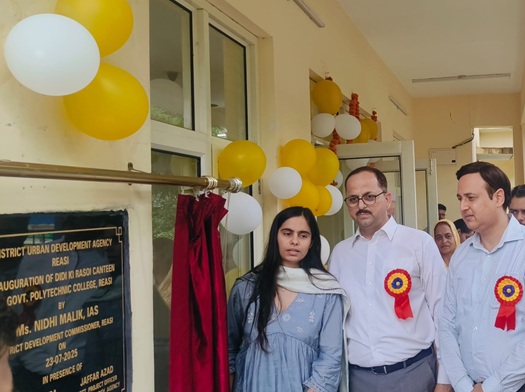 Deputy Commissioner Reasi, Nidhi Malik, IAS inaugurated the “Didi Ki Rasoi” canteen at Government Polytechnic College Reasi. The inauguration ceremony was attended by Project Officer DUDA Udhampur-Reasi, Jaffar Azad, Principal of Government Polytechnic College, Er. Arun Bangotra, and DIO Reasi, faculty of college, Er Himanshu Bakshi, Er Sunil Kumar, Sh Ajay Dogra, Sh Parashottam Lal, staff of college, Sh Talwinder Singh, Sh Raiz Ahmed and officials of DUDA.