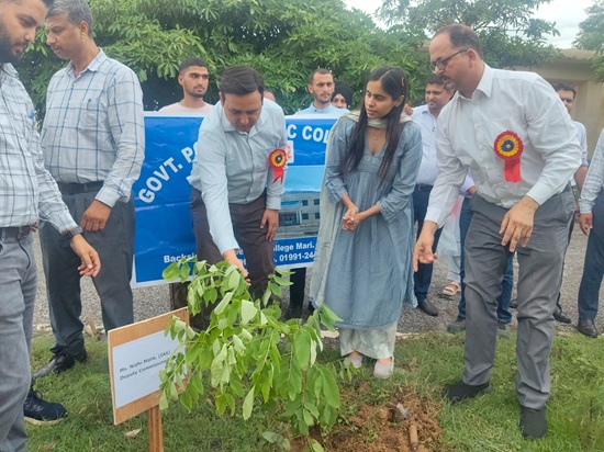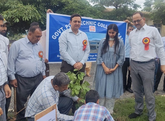 Plantation drive held at Government Polytechnic Reasi. The event was graced by Deputy Commissioner Reasi, Nidhi Malik, IAS, Principal Government Polytechnic Reasi Er. Arun Bangotra, Project Officer DUDA Udhampur-Reasi, Jaffar Azad, DIO Reasi Sh. Ujjawal among other officials and staff of the college. To mark the occasion, Silver Oak and Sukh Chain trees were planted in the campus. This green initiative symbolizes harmony, prosperity, and environmental consciousness, aligning with the administration's focus on sustainable development and community well-being.
